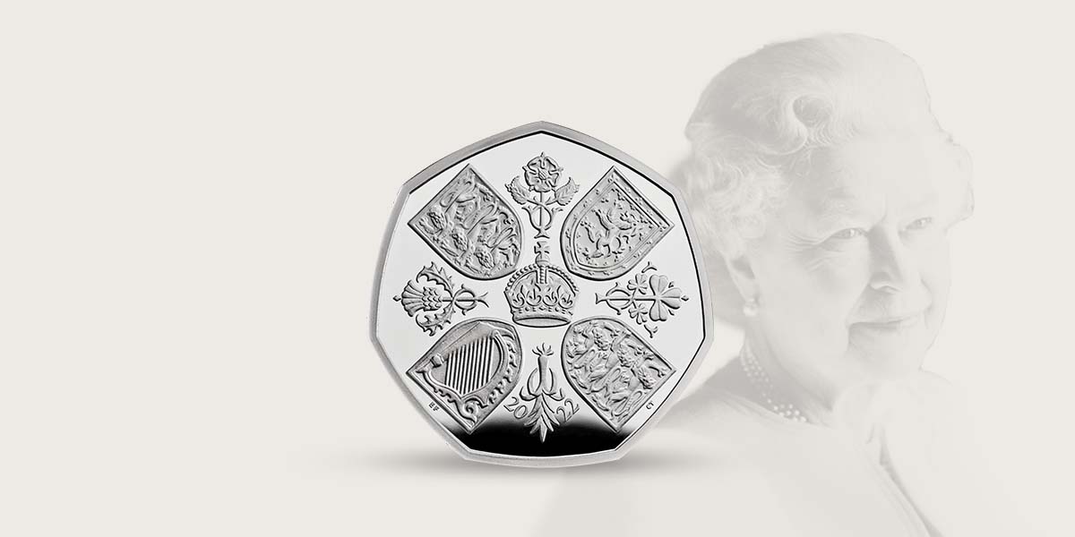 In 2022, Her Majesty became the first British monarch to celebrate a Platinum Jubilee. To honour this momentous occasion, The Royal Mint struck one of its largest commemorative coin collections to date, which includes the first UK 50p coin celebrating a royal event. Created by Andrew Ross and Deborah Osborne, the reverse of the coin features a bold, graphical celebration of Queen Elizabeth II’s 70-year reign.
